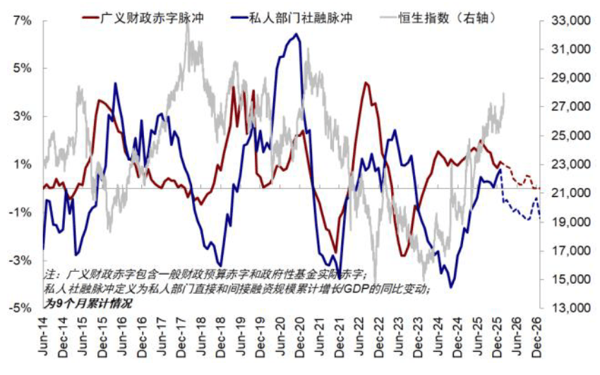 信用周期决定指数空间。受收入预期偏弱、回报与成本倒挂问题影响,私人部门传统需求仍有不足,高基数下2026年私人社融脉冲或继续走弱,作为对冲的财政若仅是维持2025年的支持力度,广义财政赤字脉冲也大概率将继续走低。基准情形下,若政策仅发挥托底作用,2026年仍将转向信用周期震荡放缓但产业趋势延续。往前看,两会对政策总量和方向的定调是关键。2026年地方两会分省加权平均GDP增速目标从去年的5.3%小幅下调至5.1%[2],后续政策效果需关注两个维度:一是看总量上是否大举发力,二是看结构上是否会向提振内需(如收入、社保)和缓释系统性风险(如化债、收储)倾斜。若政策仅发挥托底作用,中国信用周期大概率震荡走弱,指数空间有限。如果财政大举发力,且进一步向内需与兜底居民资产负债表倾斜,基本面或加快修复,以支撑指数表现。